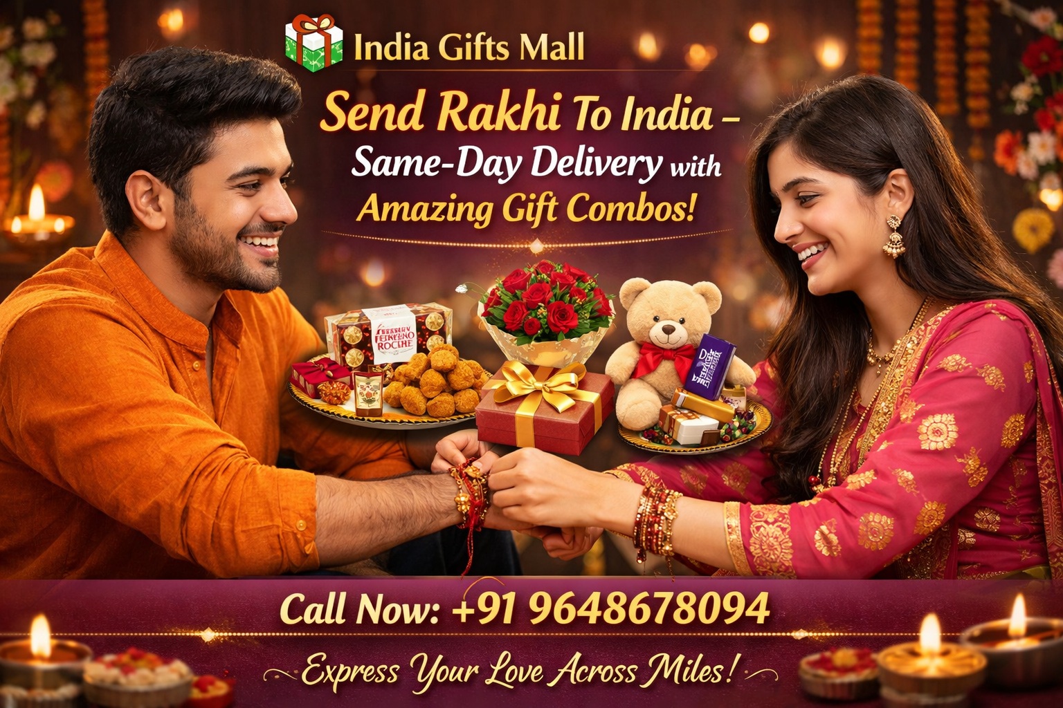 At India Gifts Mall, we have been helping families celebrate festivals across borders for over 17 years. Our mission is to make sending rakhi to usa seamless, reliable, and stress‑free. For any assistance, our dedicated support team is available at +91 9648678094.